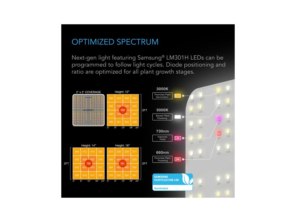 Spektrum: 660nm, 730nm, 3000K, 5000K
